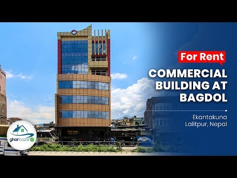 This commercial building is located at Bagdol near Nakkhu Chowk, Lalitpur. It has access to 12 lane wide ringroad. The building is 9 storied catering different commercial functions, elevator and an abundant space for parking in the basement. It is very feasible, well maintained, glass facet commercial complex and has a beautiful rooftop.